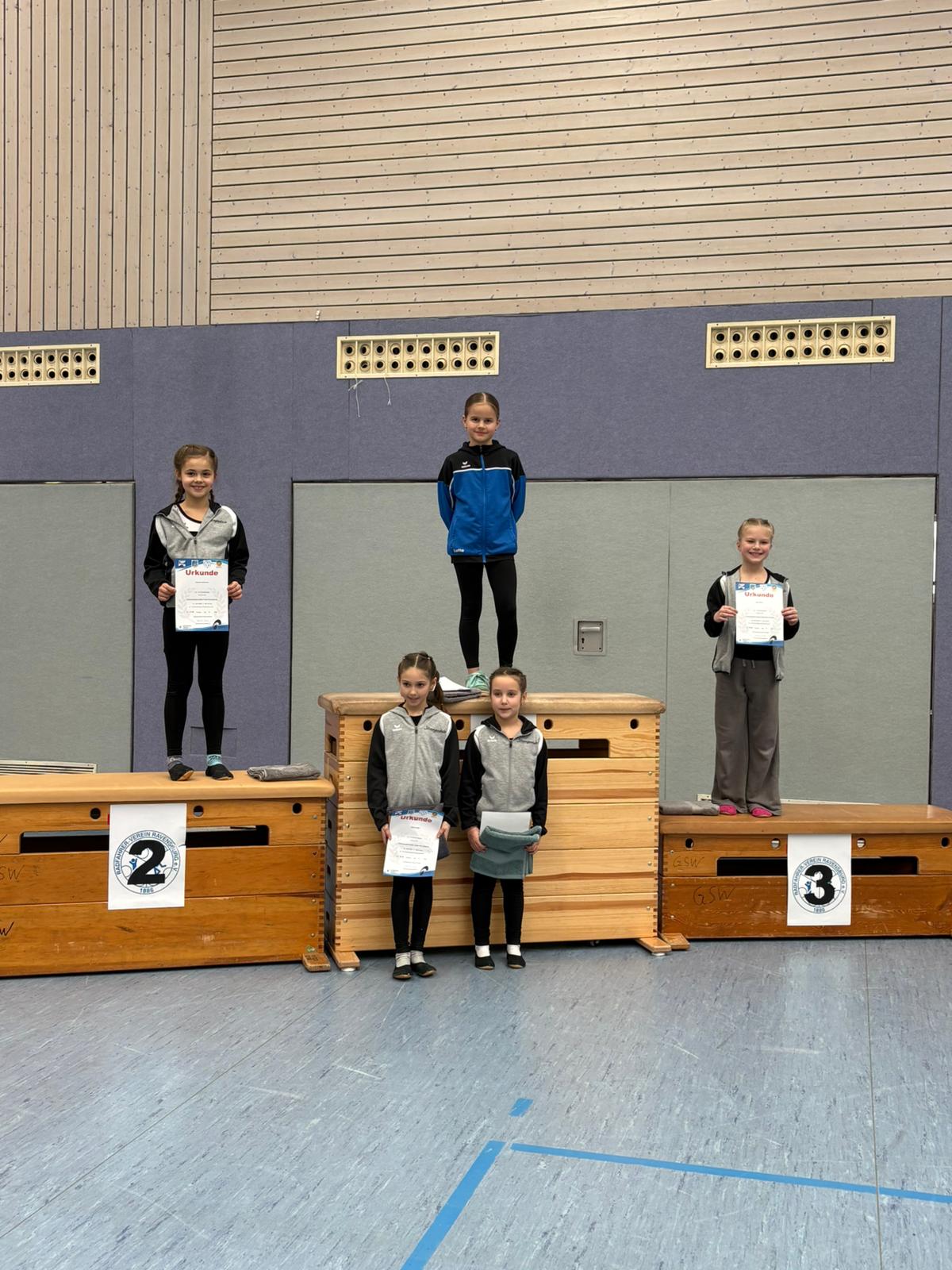In der Disziplin 4er Einradsport Schülerinnen gingen vier Mannschaften des RVR an den Start und belegten geschlossen die Plätze 1 bis 4. Eine weitere 4er-Mannschaft startete außer Konkurrenz und sammelte bei ihrem ersten Wettkampf wichtige Erfahrung.