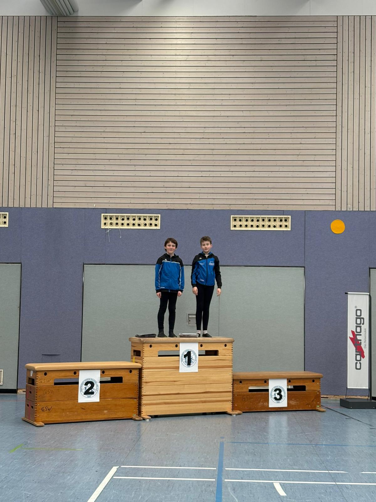 Ihre Vereinskollegen Florian Waßner (U13) und Danilo Jenne (U15) starteten jeweils in der Disziplin 1er Kunstradsport Schüler und belohnten sich ebenfalls mit der Goldmedaille in ihrer Altersklasse.